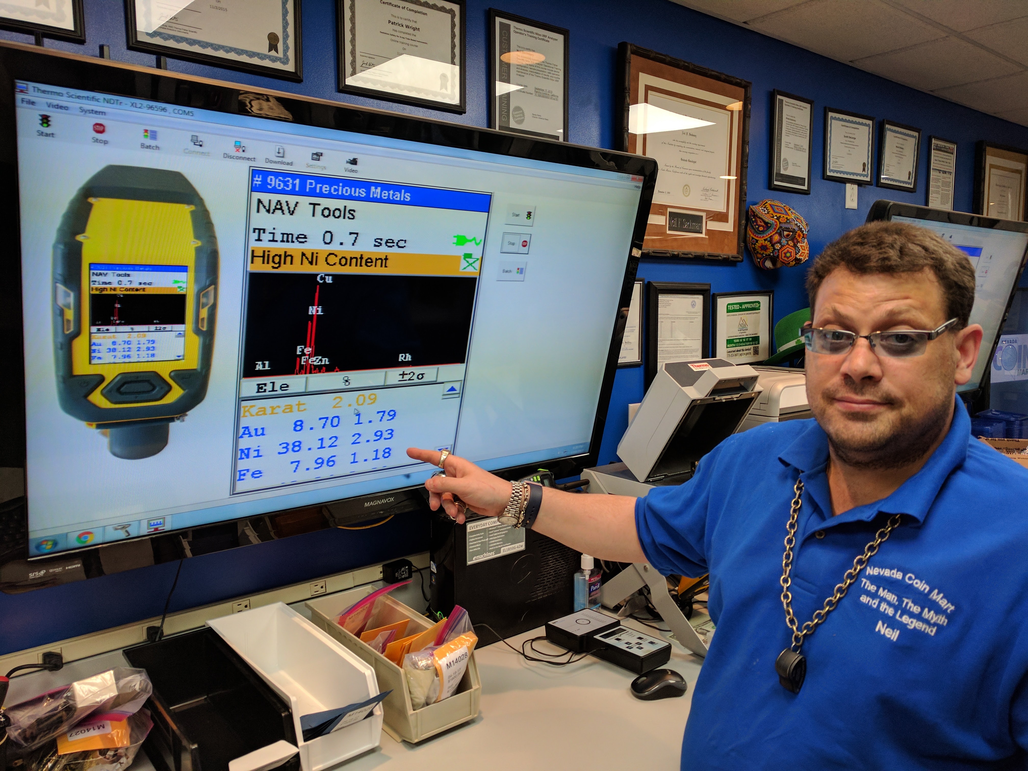 Nevada Coin Mart Neil Sackmary G.G. (GIA) Neil is a Graduate Gemologist from the GIA. He has been a practicing Gemologist for the past 25 years. Neil brings a wealth of knowledge, making Nevada Coin Mart one of the most professional and advanced jewelry buying companies anywhere. GIA GRADUATE GEMOLOGIST REQUIREMENTS Gem Identification Lab #1 Jewelry Buyer in Vegas Neil Sackmary has been buying, selling and researching coins, collectibles, jewelry and other valuables for over 25 years. Neil is a veteran Collectibles & Jewelry Buyer. He has bought and sold 2,000,000 pieces of jewelry.. His expertise is encompassed by years of research and market pricing, but he takes a particular interest in sterling silver jewelry and collectibles. With over 1,000,000 online auction jewelry transactions under her belt, he has the experience to recognize and identify rare, obscure pieces of jewelry very few others could identify. When it comes to various brands like Tiffany and Co, DTR – Jay King, Judith Ripka, I can examine and give you the best information and price on your jewelry possessions. LICENSED BY CLARK COUNTY We are proud to be licensed by Clark County to legally buy jewelry from the general public. Nevada Coin Mart has transitioned into the modern technology age combined with the highest possible cash offerings and the best customer service. FREE EVALUATION Nevada Coin Mart offers a free, in person, evaluation of your jewelry, gold, silver, coins, bullion and larger diamonds. We use a state-of-the art x-ray spectrometer to ensure you receive top dollar.